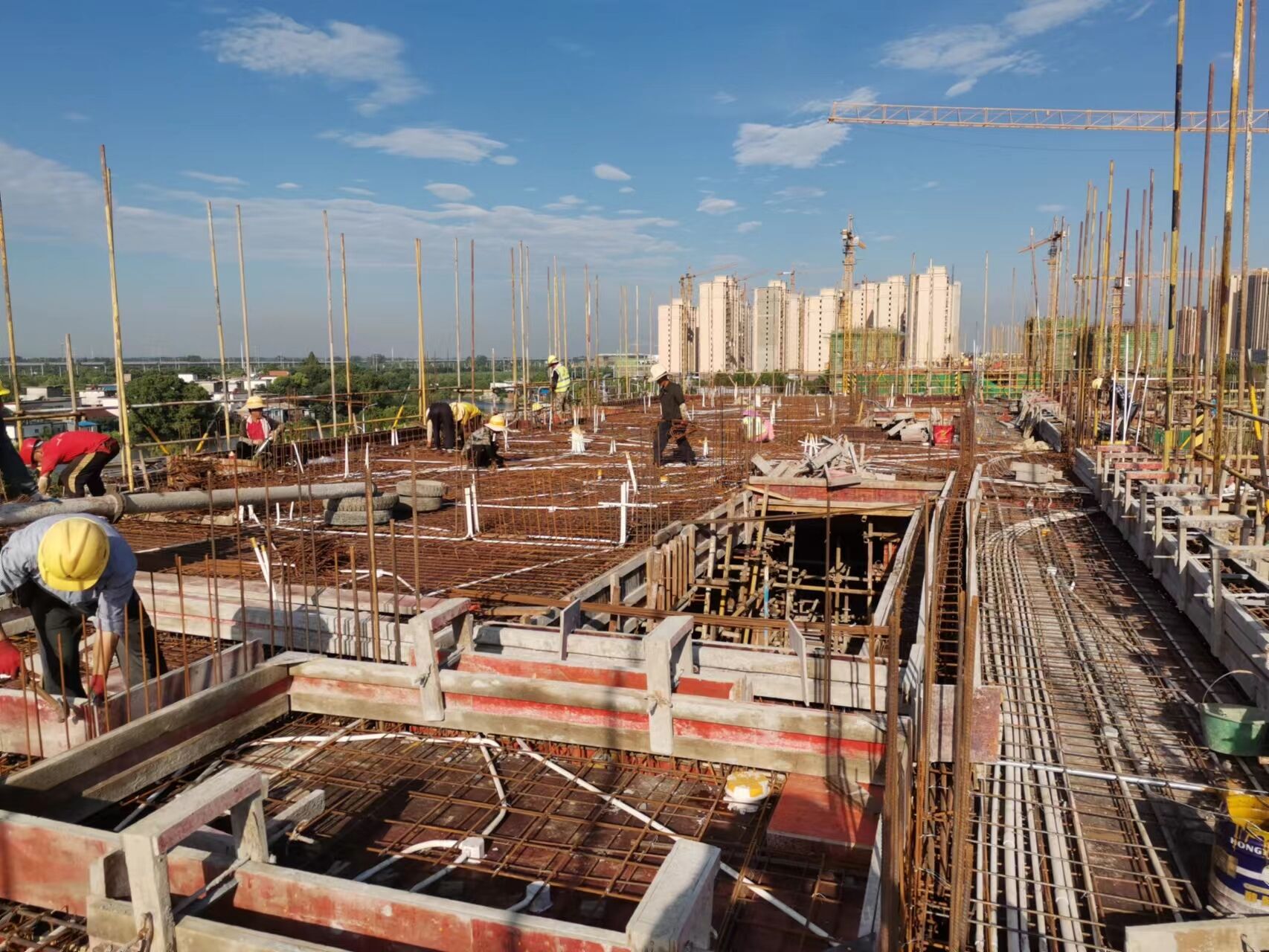 施工現(xiàn)場,工人們揮汗如雨,辛勤勞動